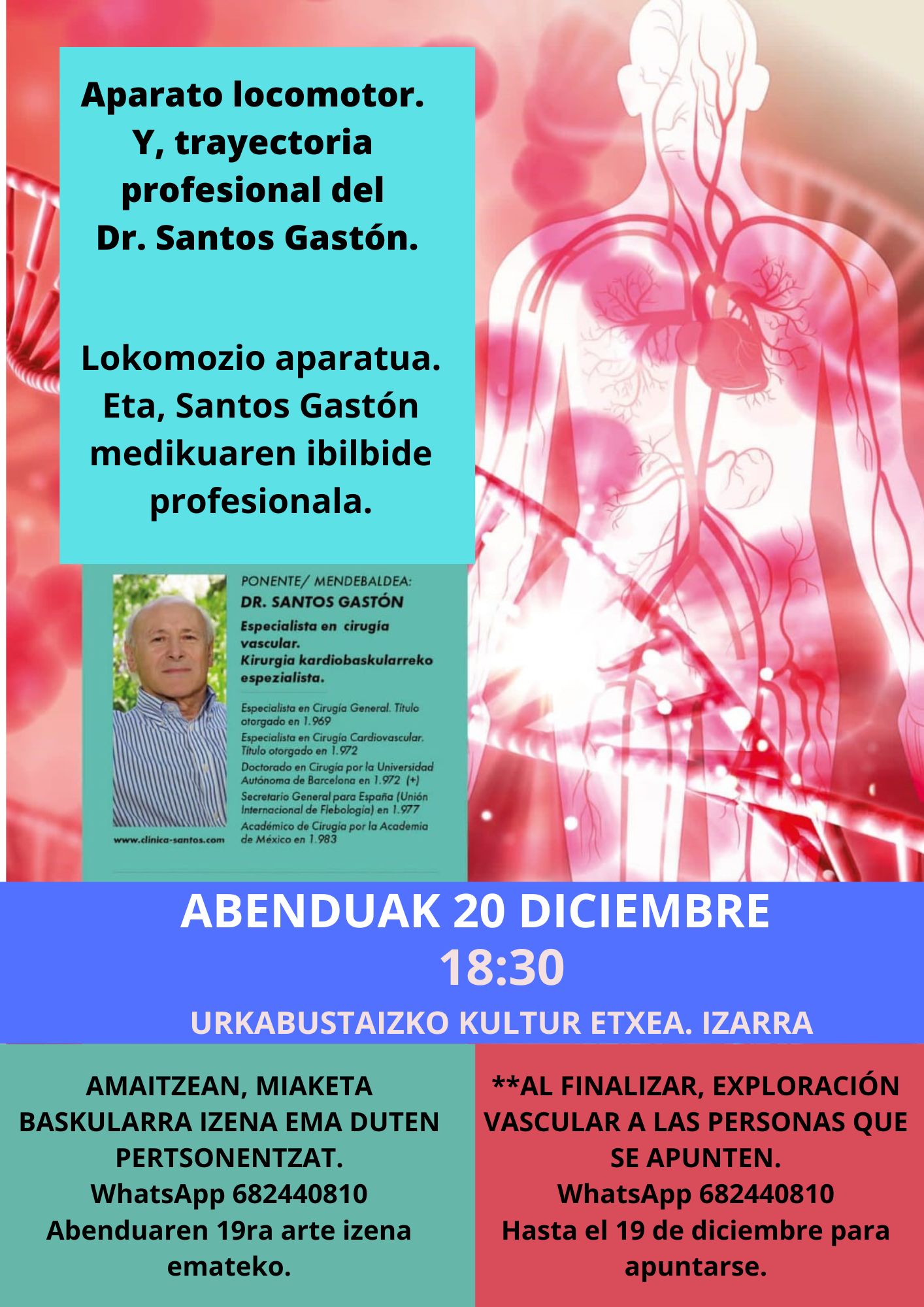 Este miércoles, 20 de diciembre, conferencia sobre el aparato locomotor a cargo del doctor Santos Gastón.