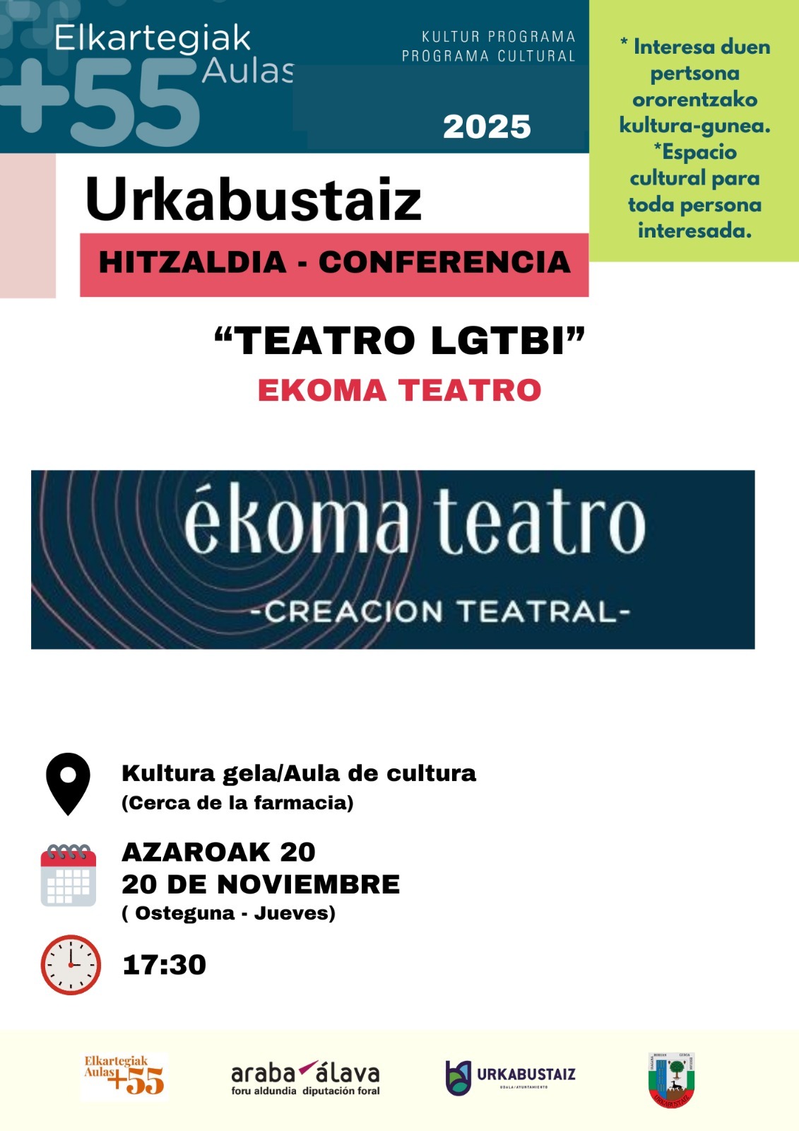 LGTBI antzerkiari buruzko hitzaldia 2025-11-19T12:47:10+00:0019/11/2025| View Larger Image Ostegun honetan, azaroak 20, LGTBI antzerkiari buruzko hitzaldia egingo da Kultur Gelan (farmaziaren alboan) 17:30ean. Ekoma Teatro taldearen eskutik eta +55 Elkartegiak-ek antolatuta. ¡Compártelo! FacebookTwitterRedditLinkedInWhatsAppTumblrPinterestVkEmail