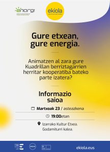 Energia renovable – Sesión informativa 2022-03-18T15:24:29+00:0018/03/2022| View Larger Image Energia berriztagarriari buruzko saio informatiboa. Martxoak 23, 19:00, Izarrako kultura etxean. ¡Compártelo! FacebookTwitterRedditLinkedInWhatsAppTumblrPinterestVkEmail