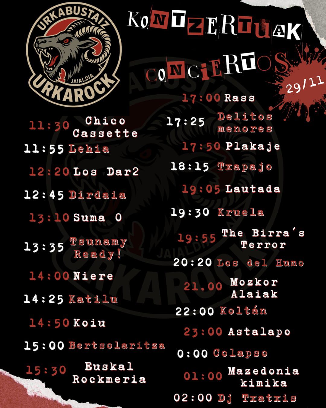 Larunbat honetan, azaroaren 29an, UrkaRock jaialdia izango da.