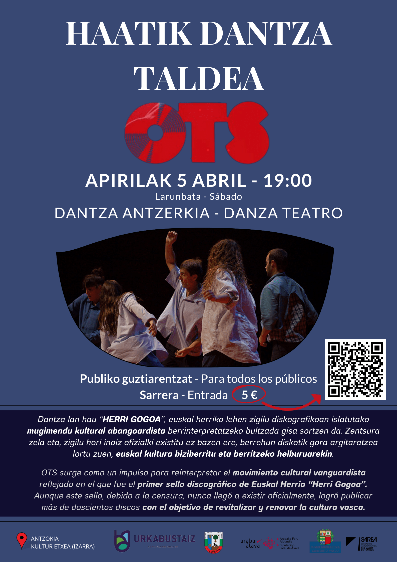 Larunbat honetan, apirilak 5, Haatik dantza konpainiak ‘OTS’ ikuskizuna eskainiko du Antzokian 19:00etan.