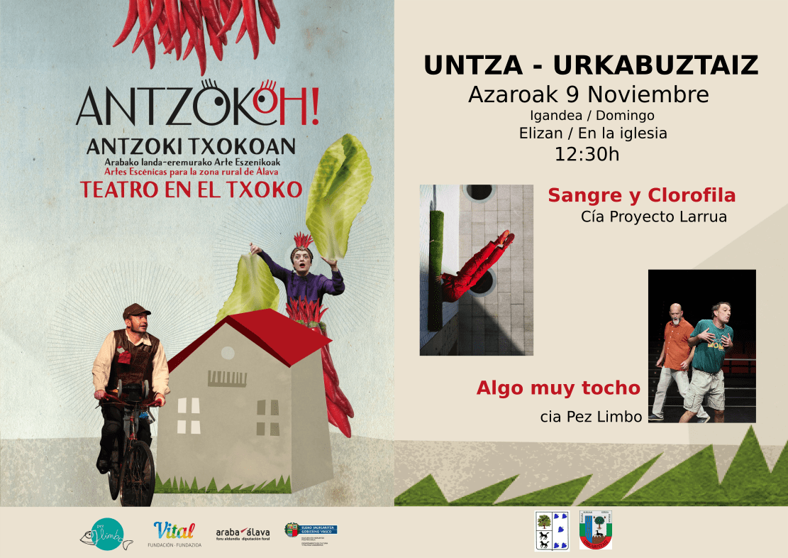 Y el 9 de noviembre, domingo, se ha organizado doblete en la iglesia de Untza a partir de las 12:30. La compañía Proyecto Larrua representará ‘Sangre y clorofila’ y la compañía Pez Limbo, ‘Algo muy tocho’.